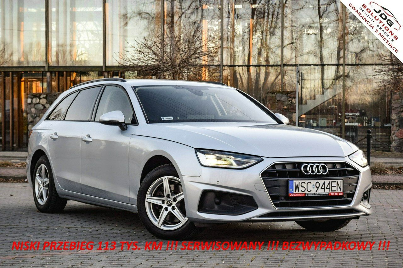 WitamPrzedstawiam Państwu ciekawą ofertę sprzedaży bardzo atrakcyjnego kombi, jakim niewątpliwie jest prezentowane Audi A4 35TDI 163KM w eleganckim i uniwersalnym, srebrnym kolorze. Czemu uważam, że jest to oferta warta zainteresowania ? Mianowicie prezentowane Audi pochodzi z polskiego salonu, było regularnie serwisowane w ASO, posiada bardzo niski, udokumentowany przebieg 113tys. km, a co najważniejsze, auto jest absolutnie bezwypadkowe i bezkolizyjne niemalże całe w oryginalnym fabrycznym lakierze ( wykonana była zaprawka na drzwiach z tytułu mikro otarcia parkingowego , co mam udokumentowane na zdjęciach). Z wyposażenia auta wymieniając tylko najważniejsze Audi posiada : lampy LED, car play, klimatronic 3-strefowy, parktronic przód i tył, kamerę cofania, elektryczną klapę bagażnika, grzane fotele, asystenta pasa ruchu, oświetlenie adaptacyjne, system czytania znaków, tempomat oraz wiele innych bardziej standardowych dodatków.