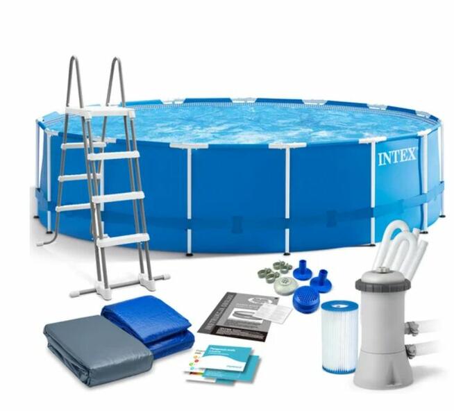 Basen ogrodowy, stelażowy, Intex, 457x122 cm. Zestaw zawiera basen, drabinkę, pompę filtrującą i inne akcesoria ...