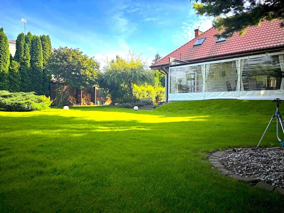 Na terenie działki otaczającej dom rozprowadzona jest siatka zabezpieczająca przed kretem, automatyczne nawodnienie, monitoring, automat do bramy wyjazdowej oraz garażowej, drewutnia, pomieszczenie gospodarcze, miejsce parkingowe na 3 samochody. Nieruchomość położona jest blisko PKP, 5 minut pieszo do szkoły podstawowej, 9 minut pieszo do przedszkola, w okolicy znajdują się sklepy spożywcze, apteka, poczta, piekarnia. Miejsce idealne dla osób ceniących sobie bliskość natury, ciszę a jednocześnie wszystkie udogodnienia w zasięgu.