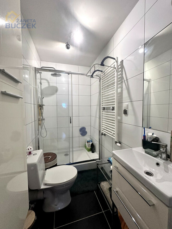 -łazienka z prysznicem, niedawno remontowana