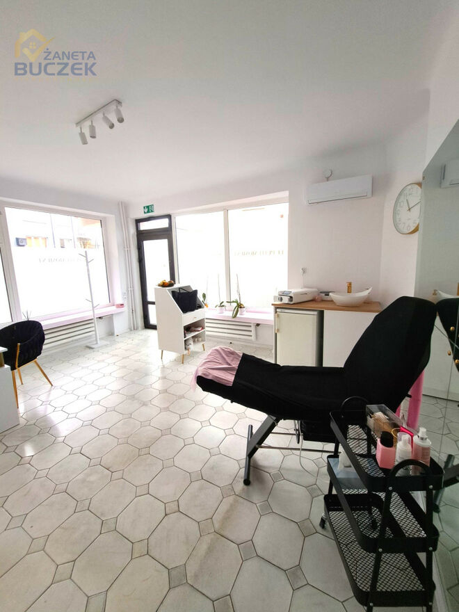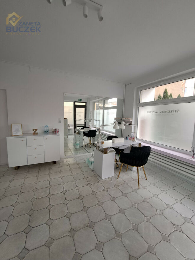 Wnętrze salonu zostało zaprojektowane elegancko i nowocześnie, z dbałością o detale. Przestrzeń pozwala rozpocząć pracę od razu, bez konieczności ponoszenia nakładów na remont czy dodatkowe wyposażenie.