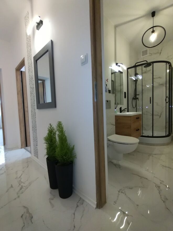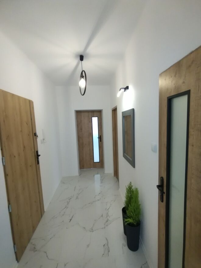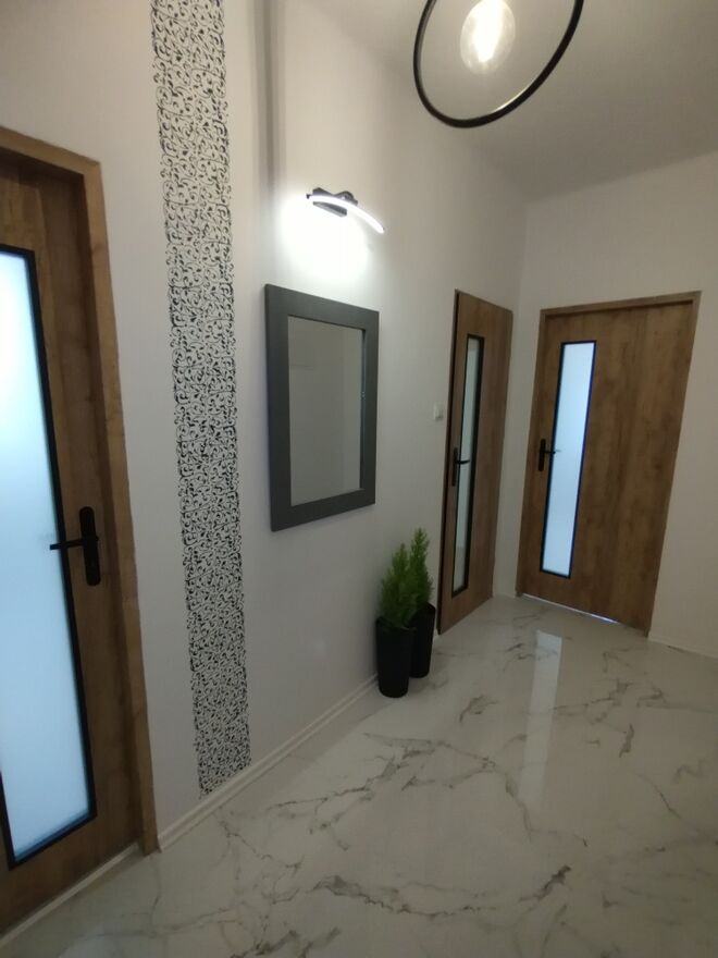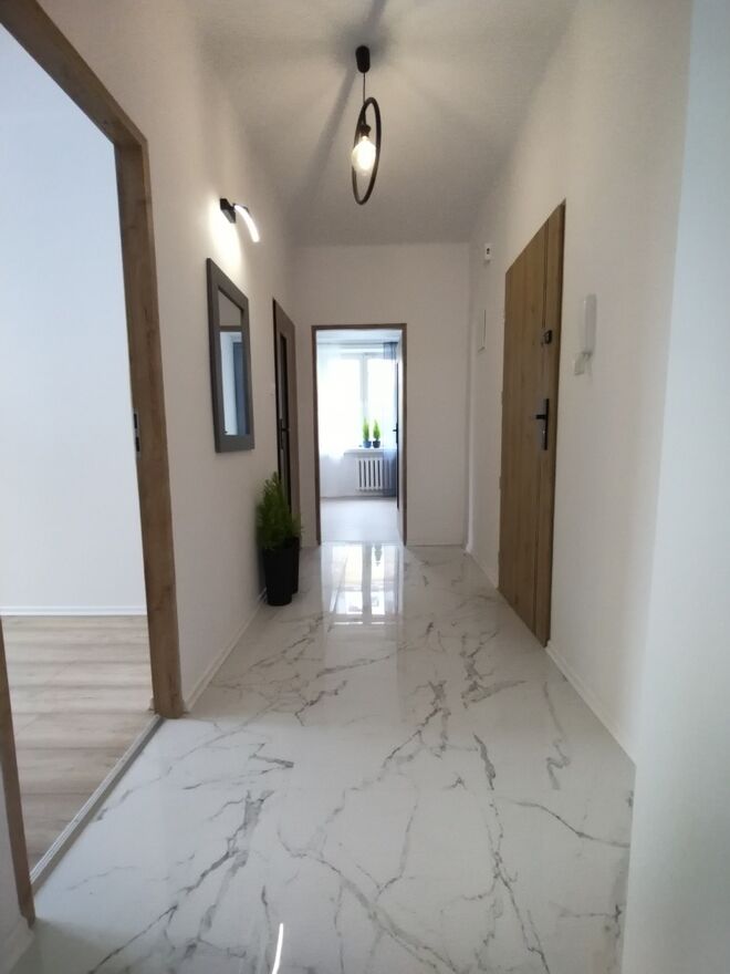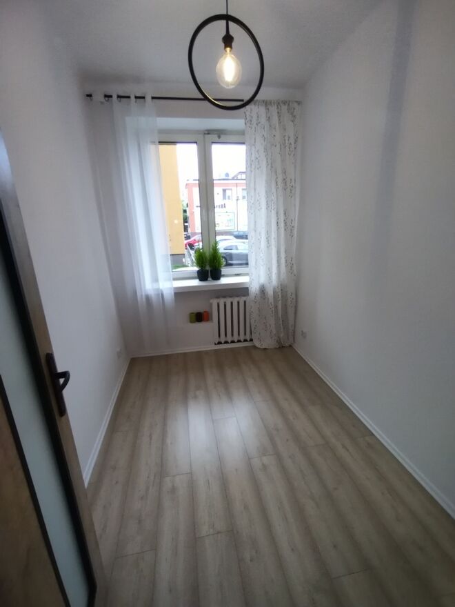 Oferta dodana za pomocą Multiportalu BeBrokerWyremontowane, gotowe do wprowadzenia mieszkanie na parterze - 3 pokoje, kuchnia w aneksie, przedpokój, łazienka oraz piwnica. Mieszkanie dwustronne z oknami na wschód i zachód. Okna plastikowe, na podłogach panele i gres, na ścianach gładzie gipsowe. Nowe drzwi wejściowe i pokojowe. Pokoje duże w regularnych kształtach. Wymieniona instalacja wody, prądu i kanalizacji. Łazienka kompletna z kabiną prysznicową, umywalką i wc, dodatkowo przygotowana instalacja pod pralkę i suszarkę. Aneks kuchenny z przewodami elektr. pod kuchnię indukcyjną i kanałem wentylacyjnym. Centralne ogrzewanie, ciepła i zimna woda - z sieci miejskiej. Brak podzielników ciepła. Bardzo duża przynależna piwnica. Blokiem zarządza wspólnota mieszkaniowa. Blok 2-piętrowy, zbudowany z pełnej cegły, dodatkowo ocieplony, położony w osiedlowym zadrzewieniu. Bardzo małe straty cieplne. Przed blokiem duży parking. Klatki schodowe czyste, wejścia do klatek zabezpieczone domofonem. Budynek stoi z dala od ruchliwych i głośnych ulic – jest cicho i komfortowo. Blisko do stacji PKP, szkoły i przedszkola, dużo punktów handlowych i usługowych.